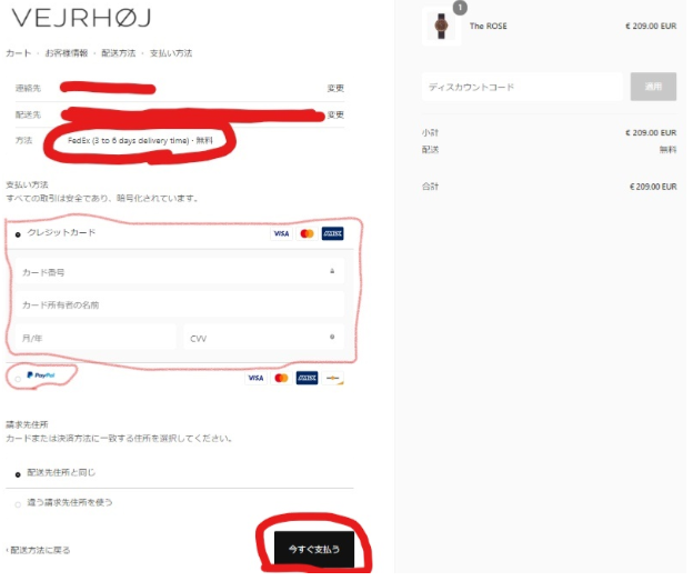 最後にクレジットカードの情報を記載してお支払いするか、個人情報の面でどうしても心配だなあって人はPayPalでお支払いすることで何も問題なくお支払いすることが出来ます。